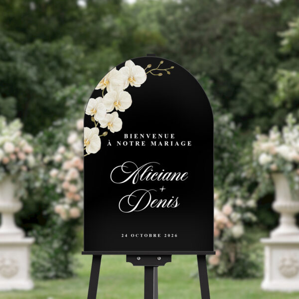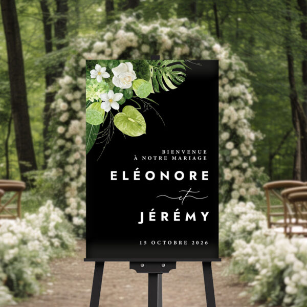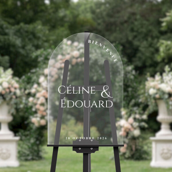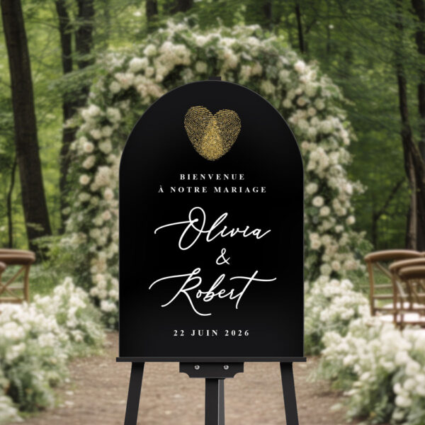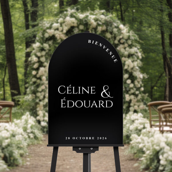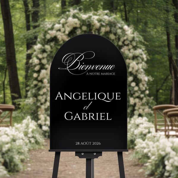 Options de personnalisation : personnalisez le panneau de bienvenue avec vos noms et la date du mariage pour une touche personnelle dont les invités se souviendront.